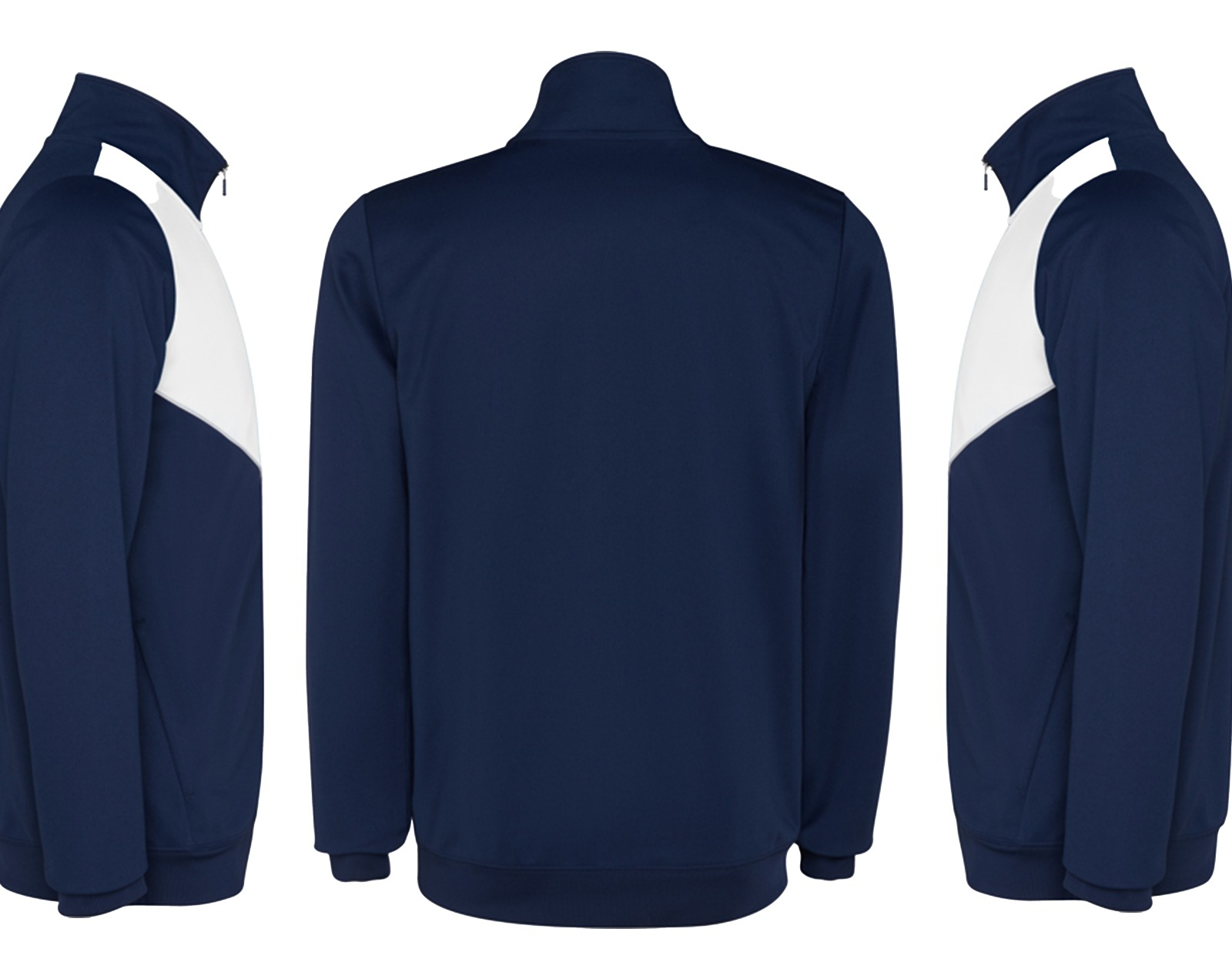 · Guler înalt cu cusături contrastante. · Fermoar central